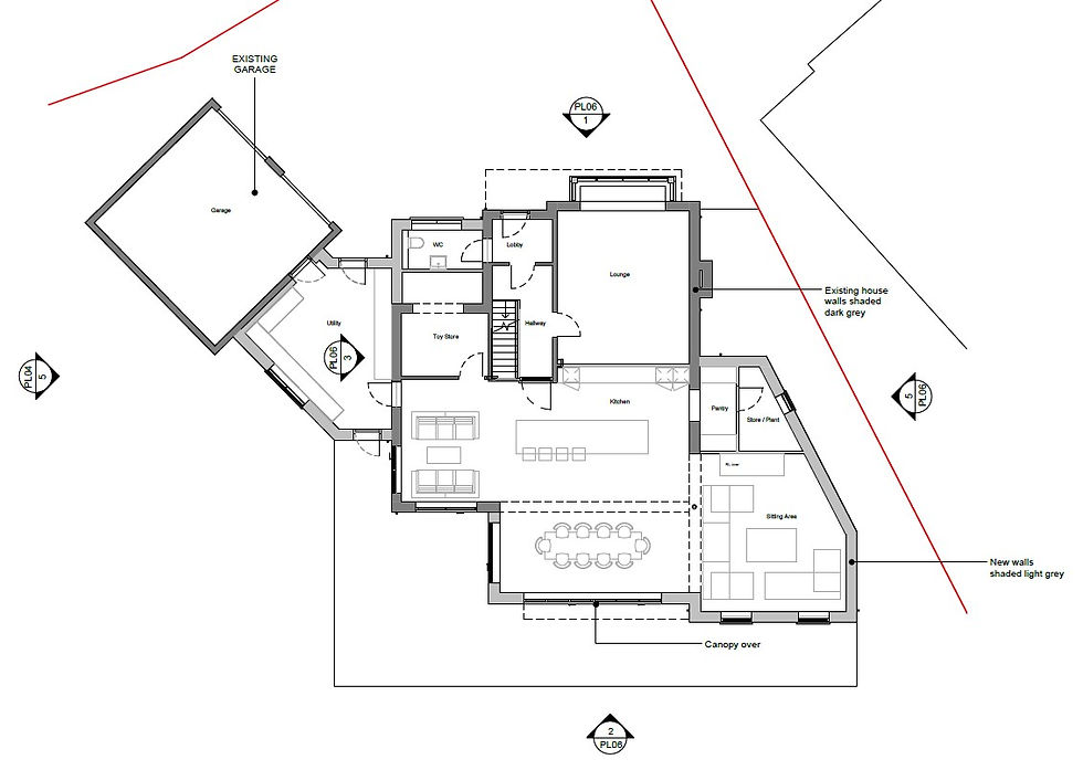 The second project involved a combination of a rear/side extension and front/side extension to a new-build property in the countryside near Paddock Wood for a large family. Through considered design, we managed to secure planning permission for a volumetric increase of around 45%. The extensions create an enlarged kitchen-diner space as well as a generous sitting room facing onto the garden. The other extensions provide a new WC, closer to the entrance, and a large utility room.